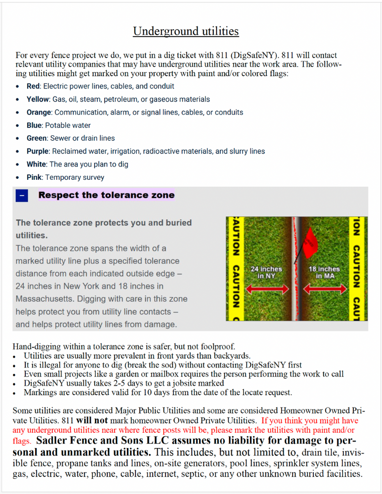 • Locations of personal underground utilities (sprinkler systems, drainage tile, other) also must be marked *by the customer* before any digging begins.