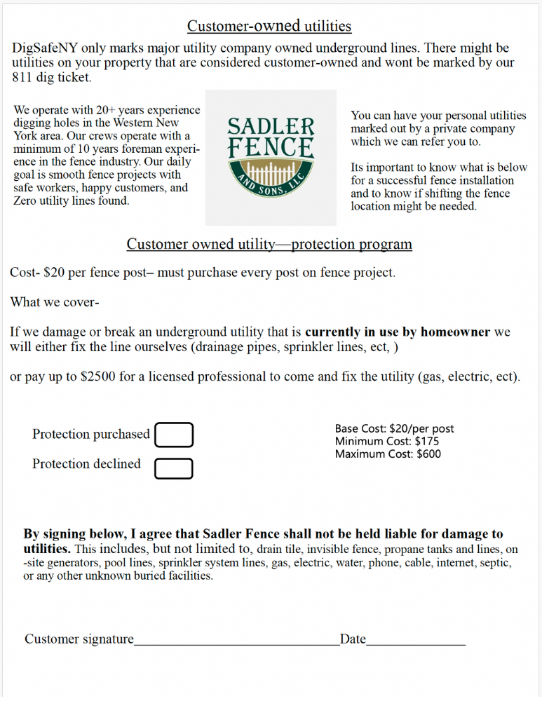 *Concrete surrounding fence posts underground must be completely located on the customer’s property
