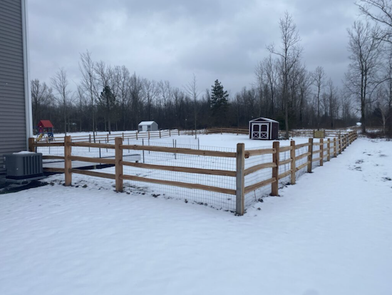 Photo: 3-rail Red Cedar post and rail with welded wire attached